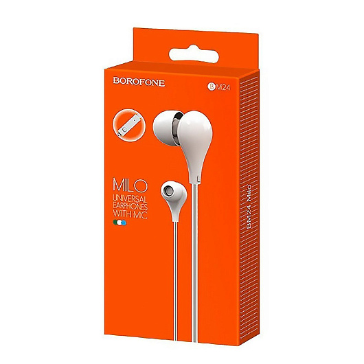 Проводные наушники с микрофоном внутриканальные Borofone BM24 Milo Jack 3,5 (white)