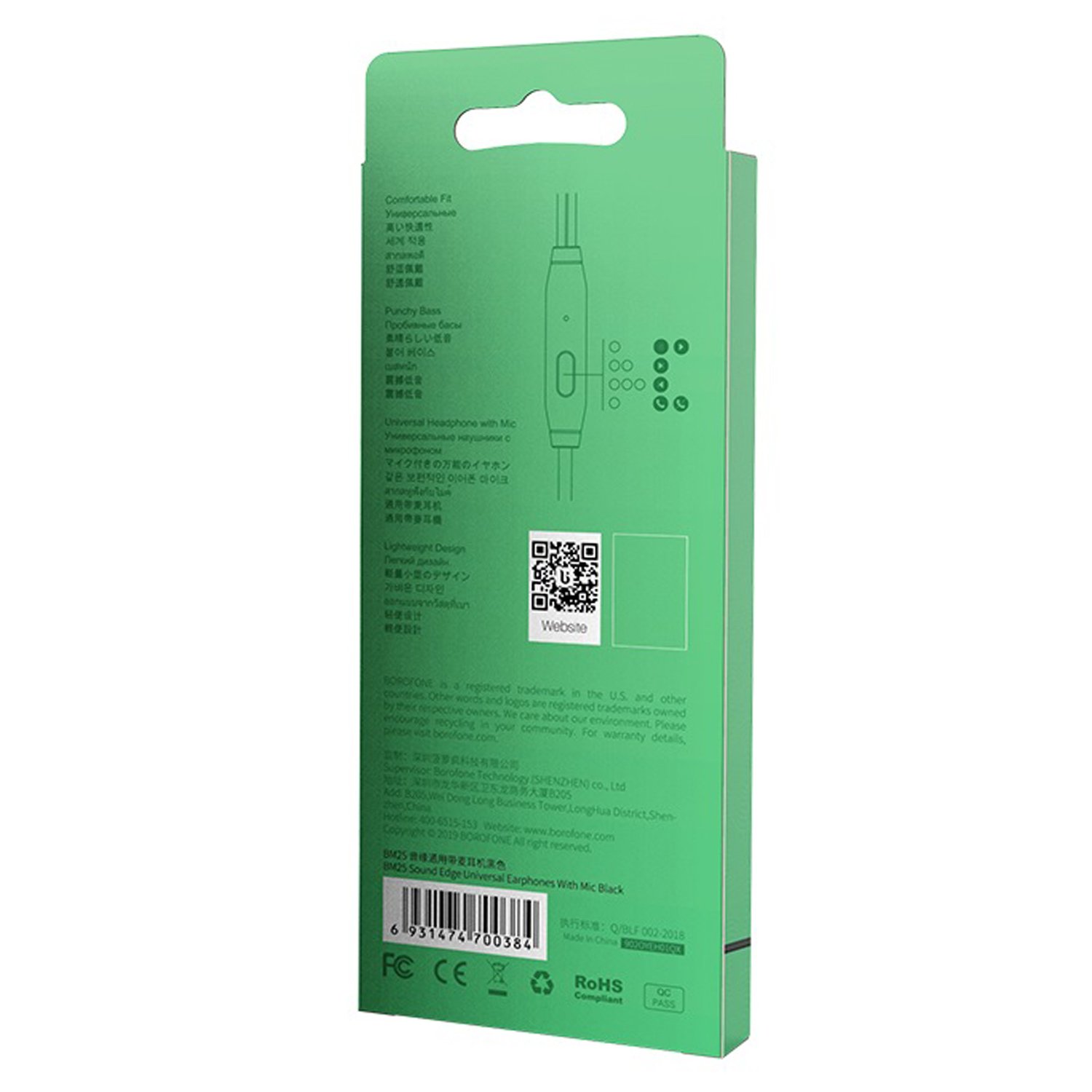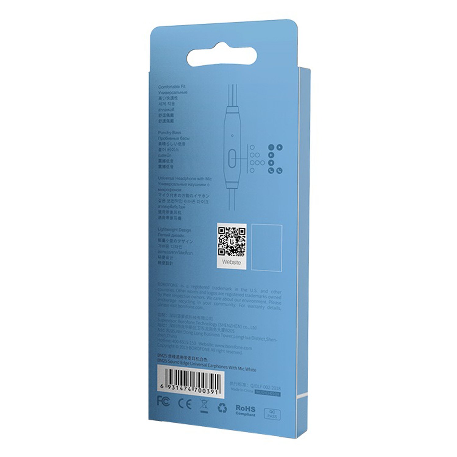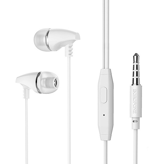 Проводные наушники с микрофоном внутриканальные Borofone BM25 Sound edge Jack 3,5 (white)