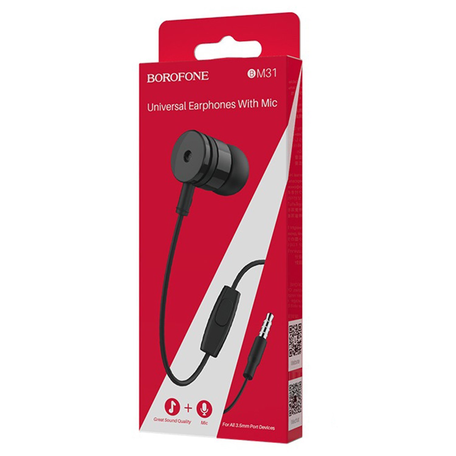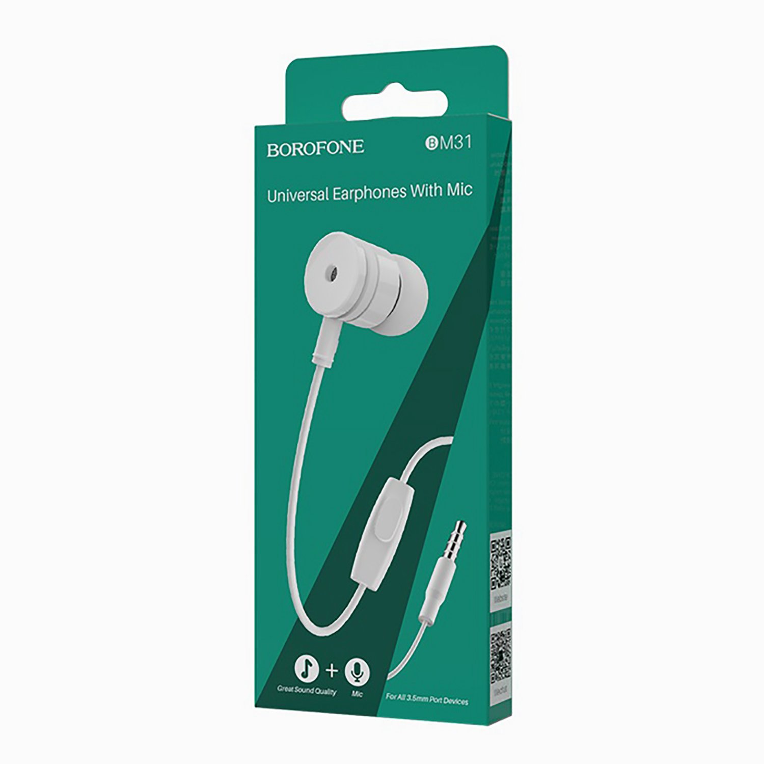 Проводные наушники с микрофоном внутриканальные Borofone BM31 Mysterious Jack 3,5 (white)
