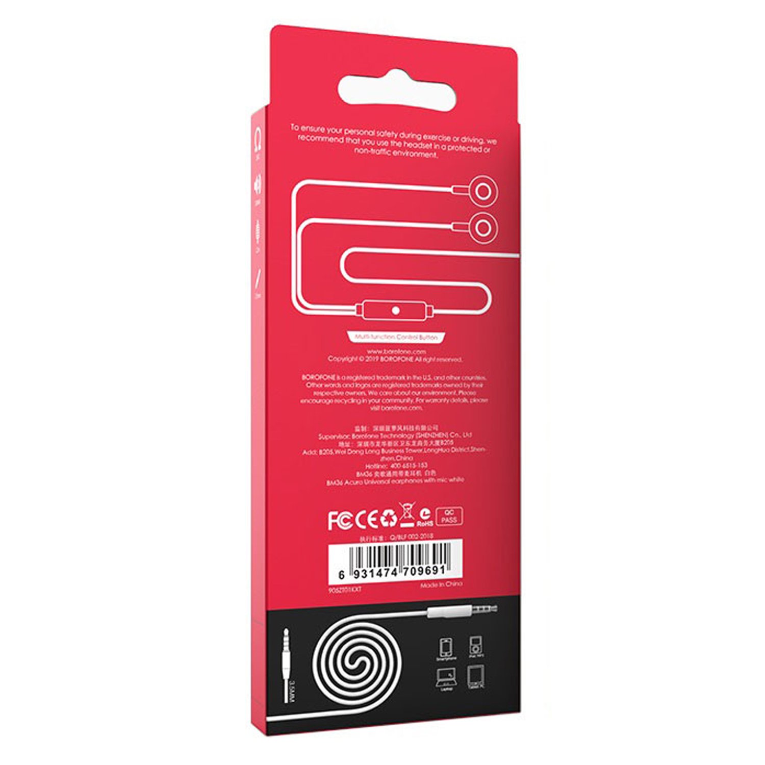 Проводные наушники с микрофоном внутриканальные Borofone BM36 Acura Jack 3,5 (black)