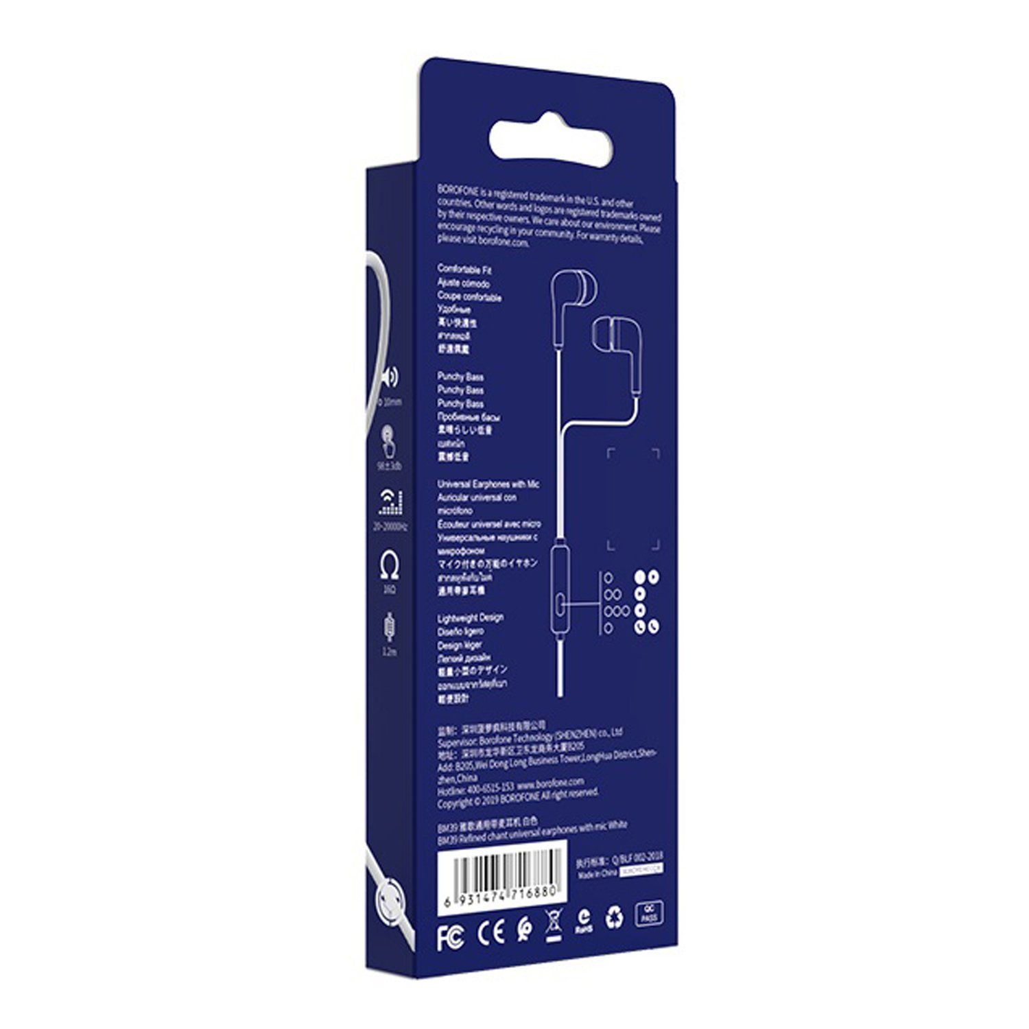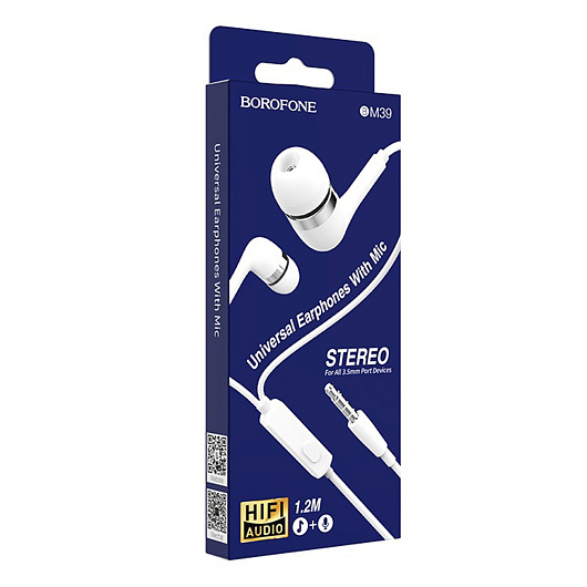 Проводные наушники с микрофоном внутриканальные Borofone BM39 Refined chant Jack 3,5 (white)