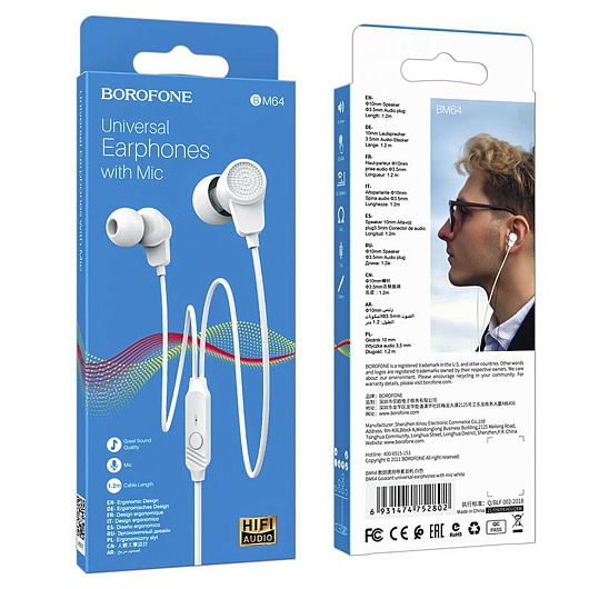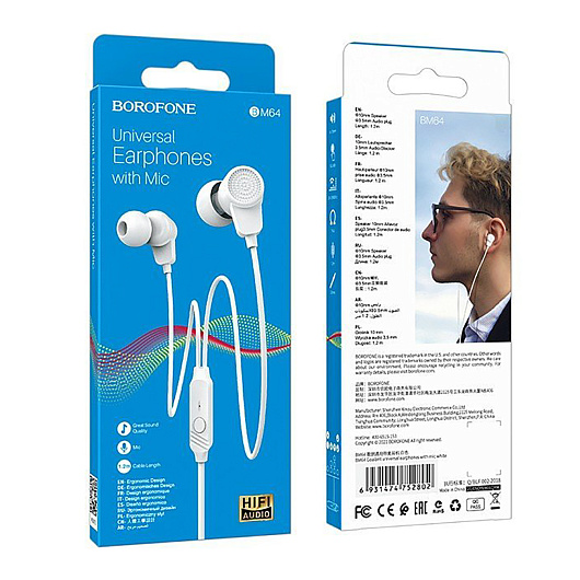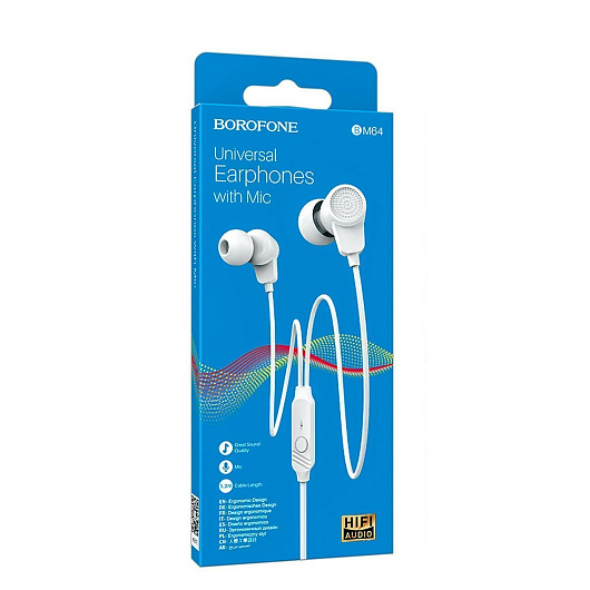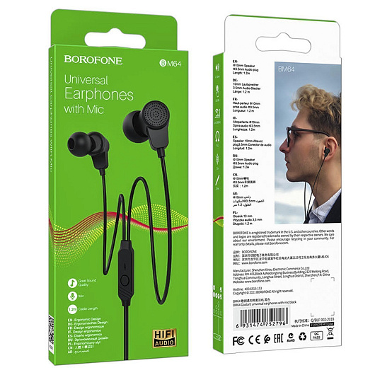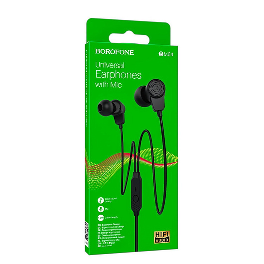 Проводные наушники с микрофоном внутриканальные Borofone BM64 Jack 3,5 (black)