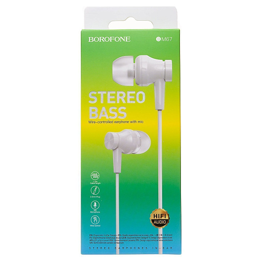 Проводные наушники с микрофоном внутриканальные Borofone BM67 Jack 3,5 (white)