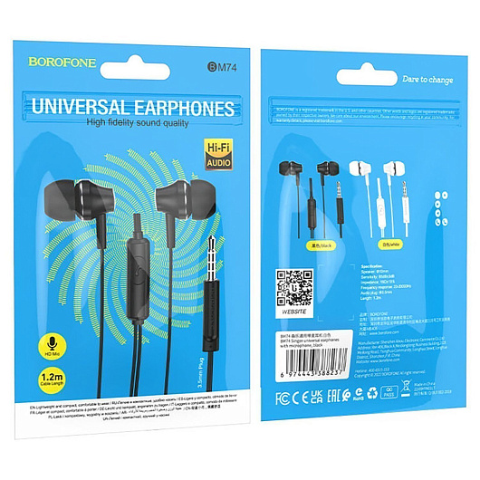 Проводные наушники с микрофоном внутриканальные Borofone BM74 Jack 3,5 (white)