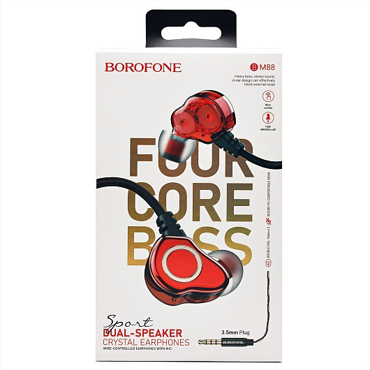 Проводные наушники с микрофоном внутриканальные Borofone BM88 Sea Jack 3,5 (red)