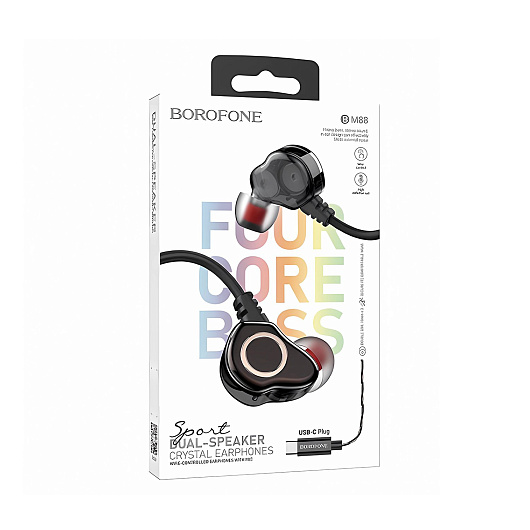 Проводные наушники с микрофоном внутриканальные Borofone BM88 Sea Type-C (iP15) (black)