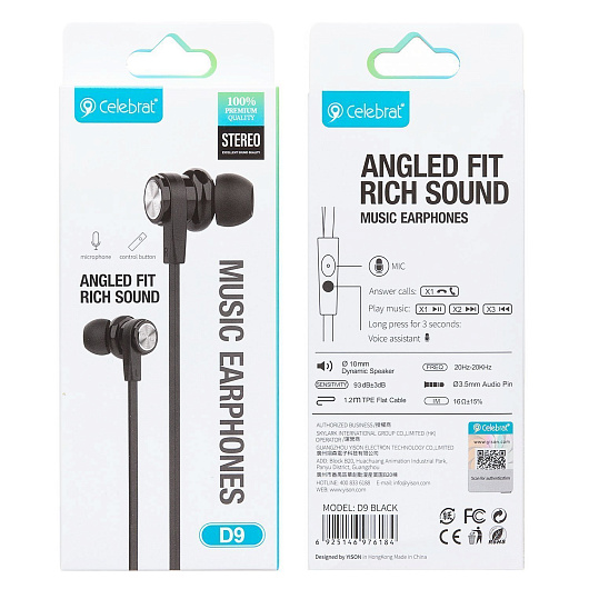 Проводные наушники с микрофоном внутриканальные Celebrat D9 Jack 3,5 (black)
