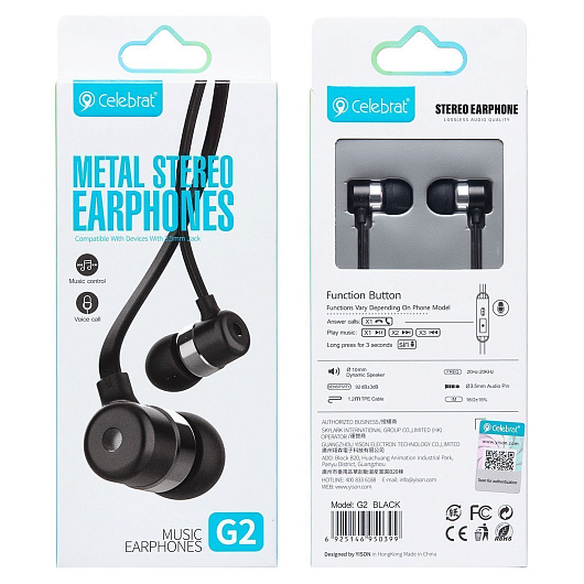 Проводные наушники с микрофоном внутриканальные Celebrat G2 Jack 3,5 (white)