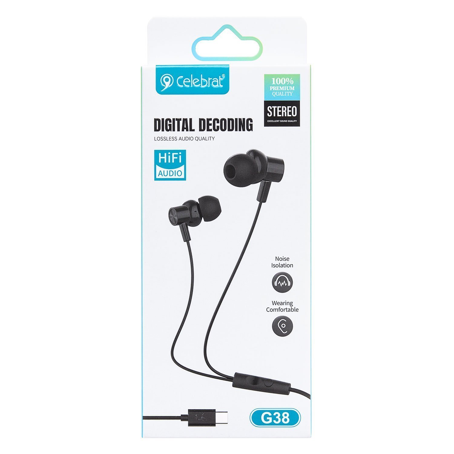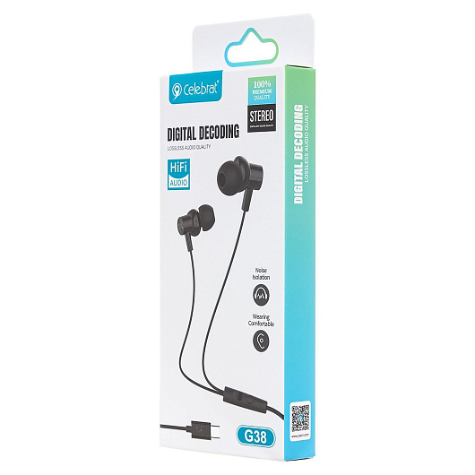 Проводные наушники с микрофоном внутриканальные Celebrat G38 Type-C (black)