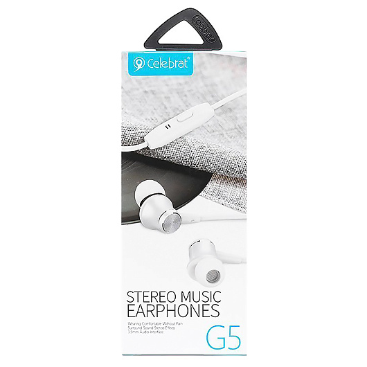 Проводные наушники с микрофоном внутриканальные Celebrat G5 Jack 3,5 (white)
