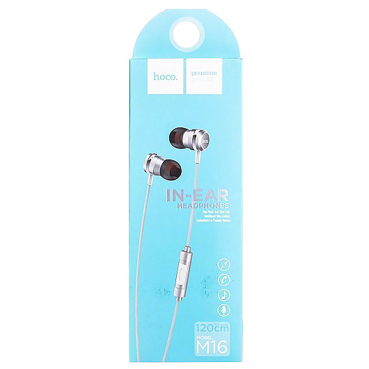 Проводные наушники с микрофоном внутриканальные Hoco M16 Ling saund metal universal Jack 3,5 (black)