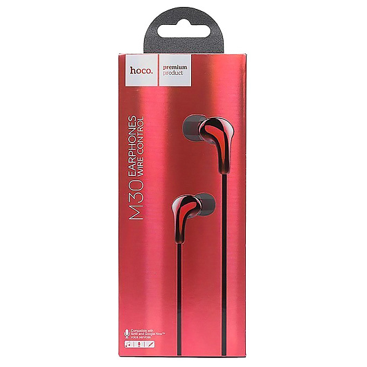 Проводные наушники с микрофоном внутриканальные Hoco M30 Glaring universal Jack 3,5 (red)