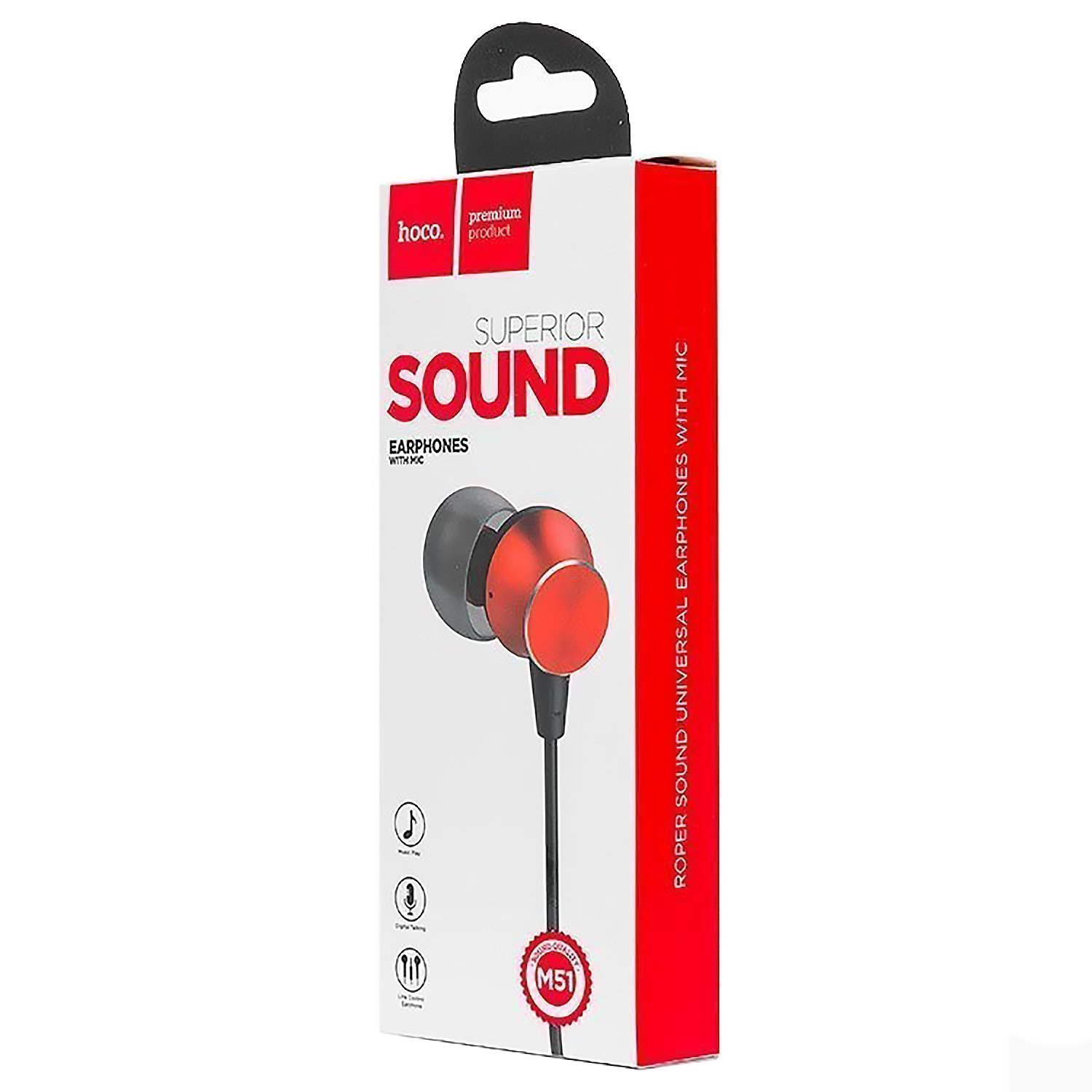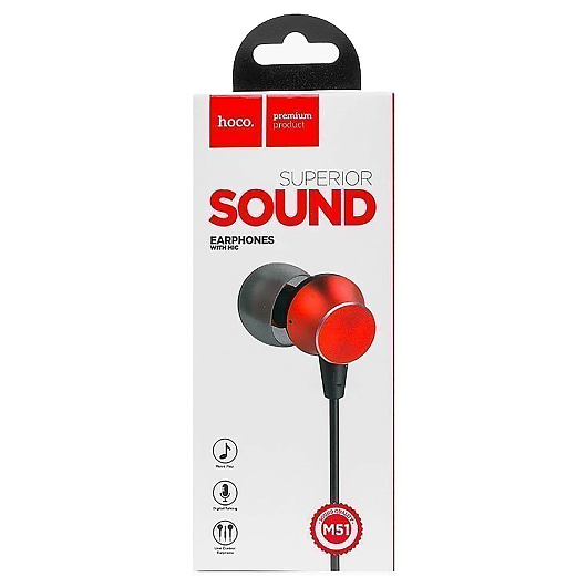 Проводные наушники с микрофоном внутриканальные Hoco M51 Proper sound universal Jack 3,5 (red)