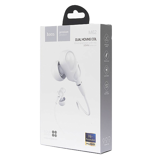 Проводные наушники с микрофоном внутриканальные Hoco M62 Dazzling dual moving Jack 3,5 (white)
