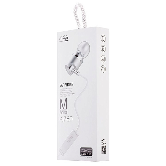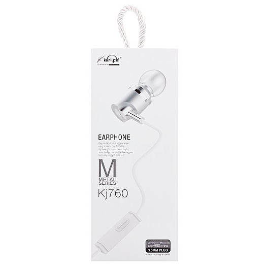 Проводные наушники с микрофоном внутриканальные Koniycoi KJ760 Jack 3,5 (white)