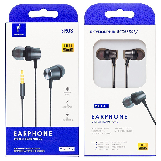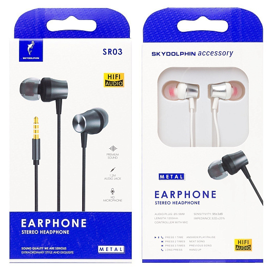 Проводные наушники с микрофоном внутриканальные SKYDOLPHIN SR03 Jack 3,5 (gray)