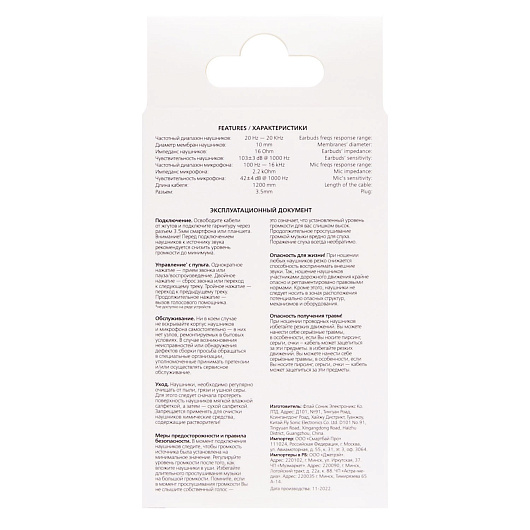 Проводные наушники с микрофоном внутриканальные Smart Buy SBH-028K Jack 3,5 (white)