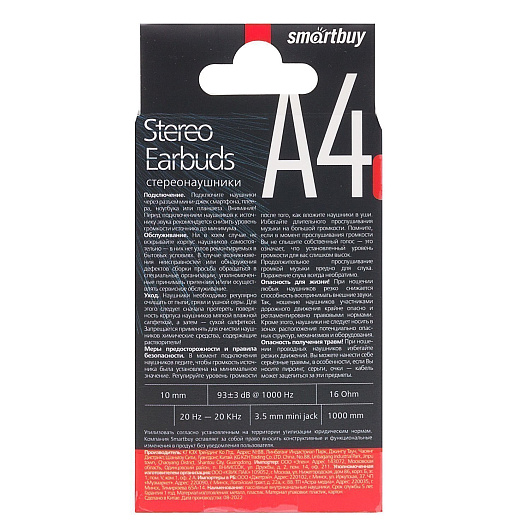 Проводные наушники внутриканальные Smart Buy SBE-012K Jack 3,5 (white)