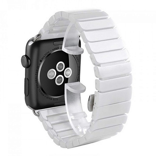 Ремешок - ApW Apple Watch 42/44/45/49 mm керамический раскладывающаяся застежка (001) (white)