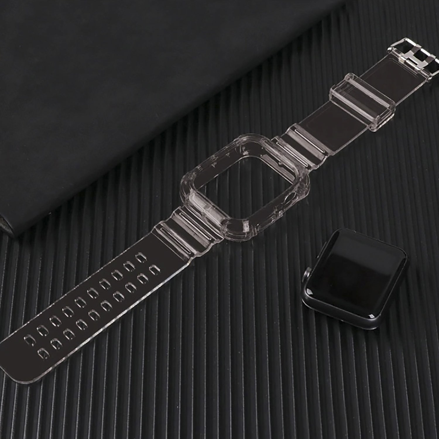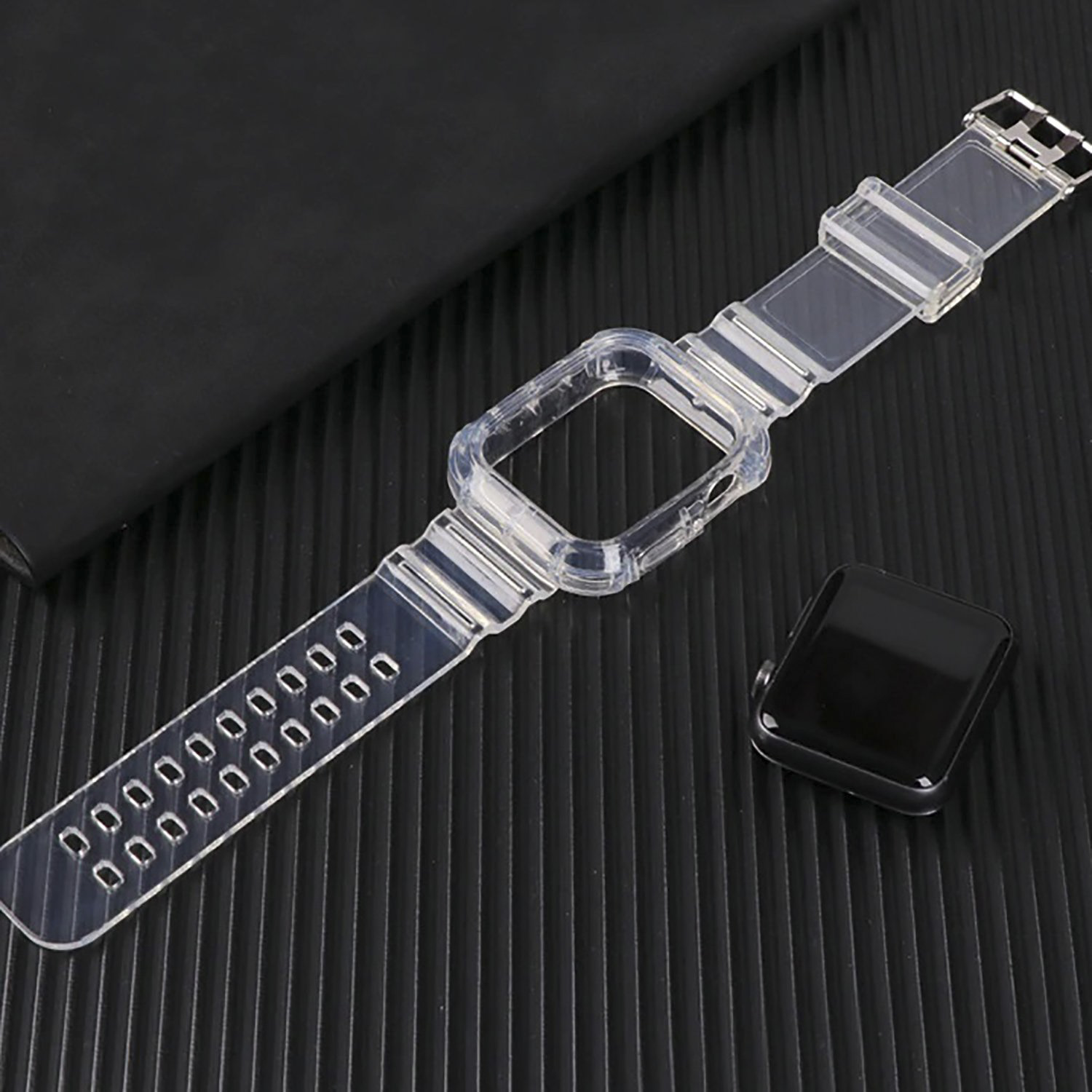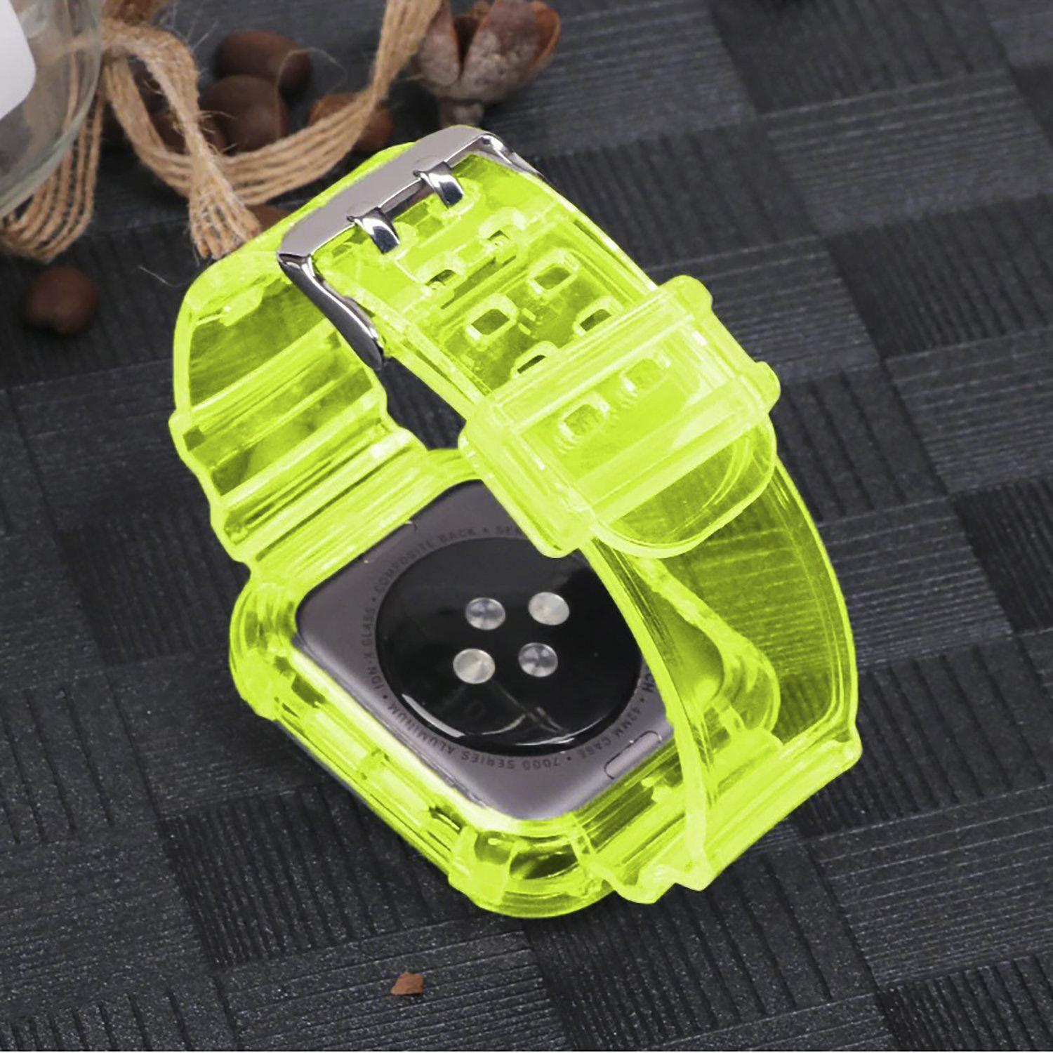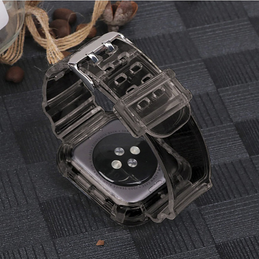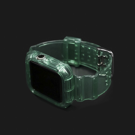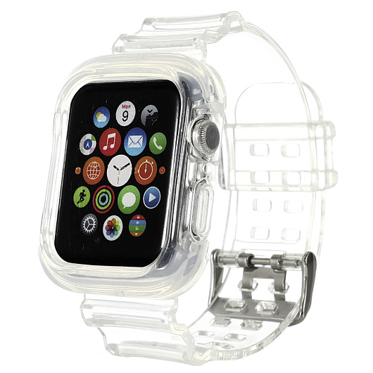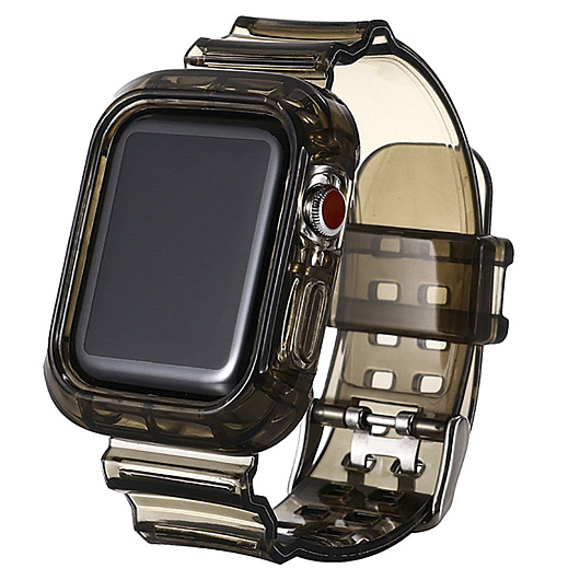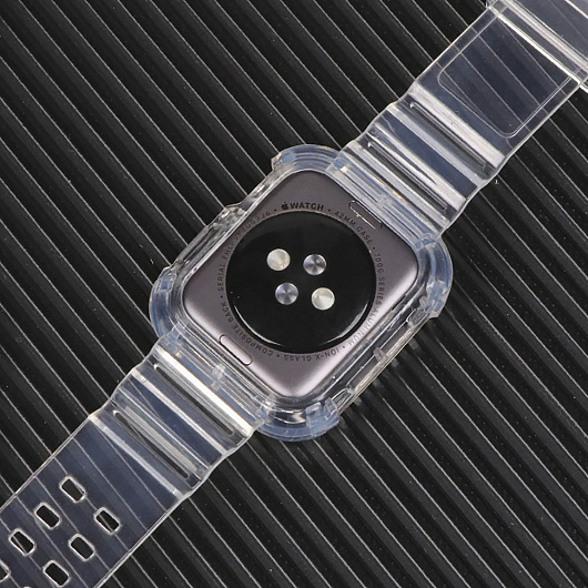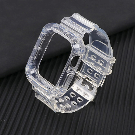 Ремешок - ApW21 Apple Watch 42/44/45/49 mm прозрачный силикон на пряжке+кейс (orange)