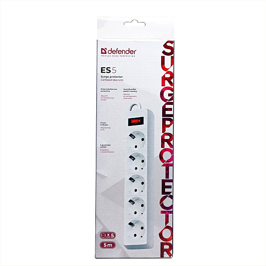 Сетевой фильтр Defender ES, 5 розеток, 5 м (white)
