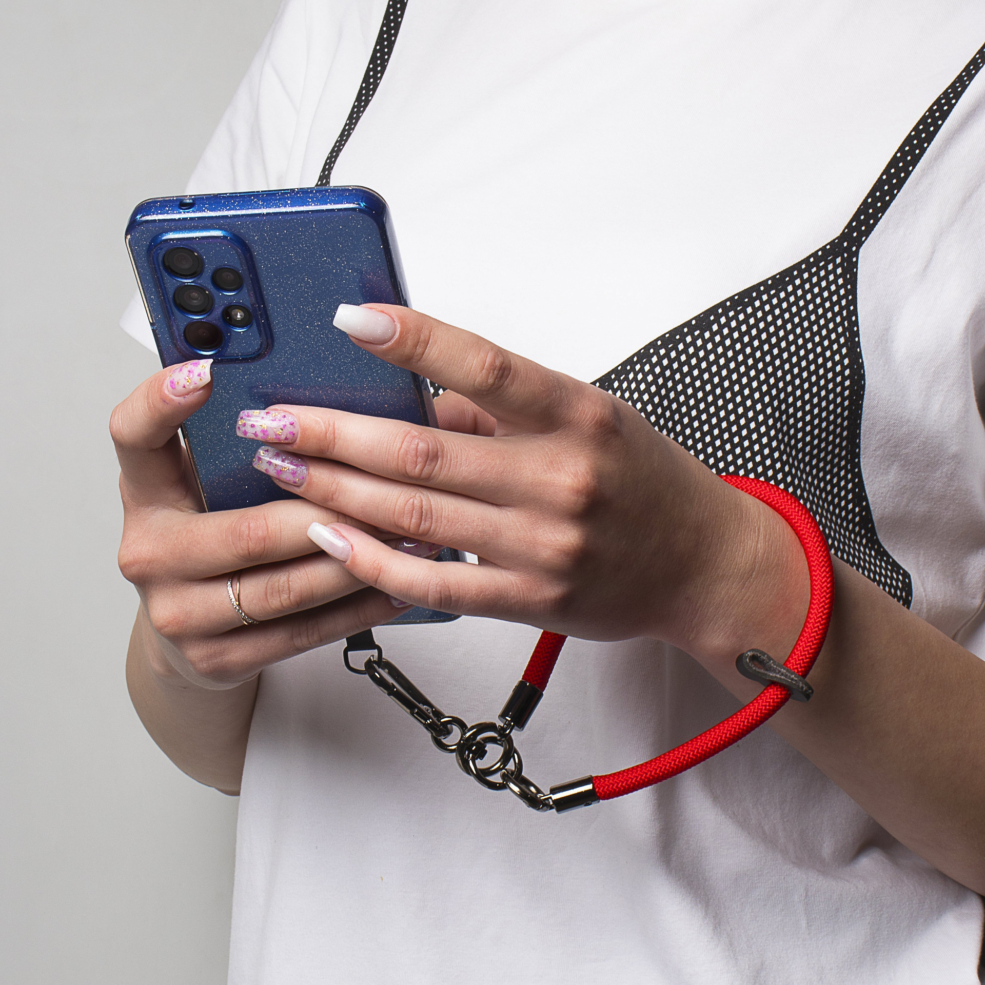 Шнурок - на руку текстильный с карабином (white)