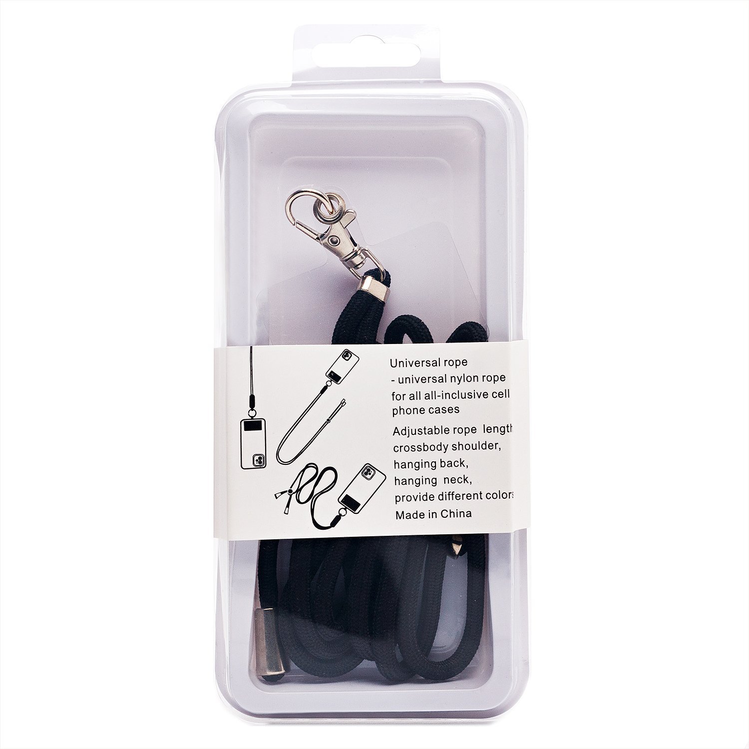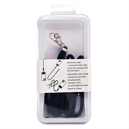 Шнурок текстильный на шею с карабином (круглый) (black)