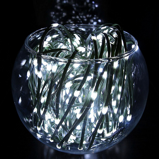 Светодиодная гирлянда уличная нить КАПЛЯ 50м, 500 диодов, зеленый провод, белый