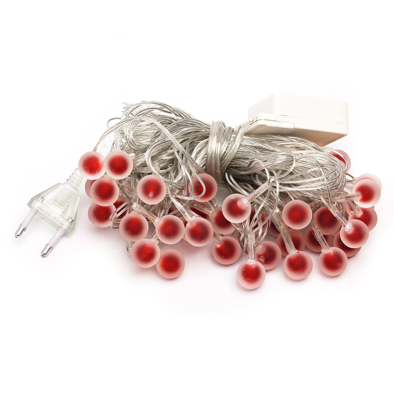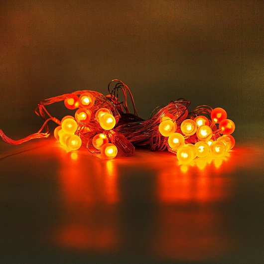 Светодиодная гирлянда - внутренняя нить "Матовые шарики" 10 метров, красный (провод прозрачный)