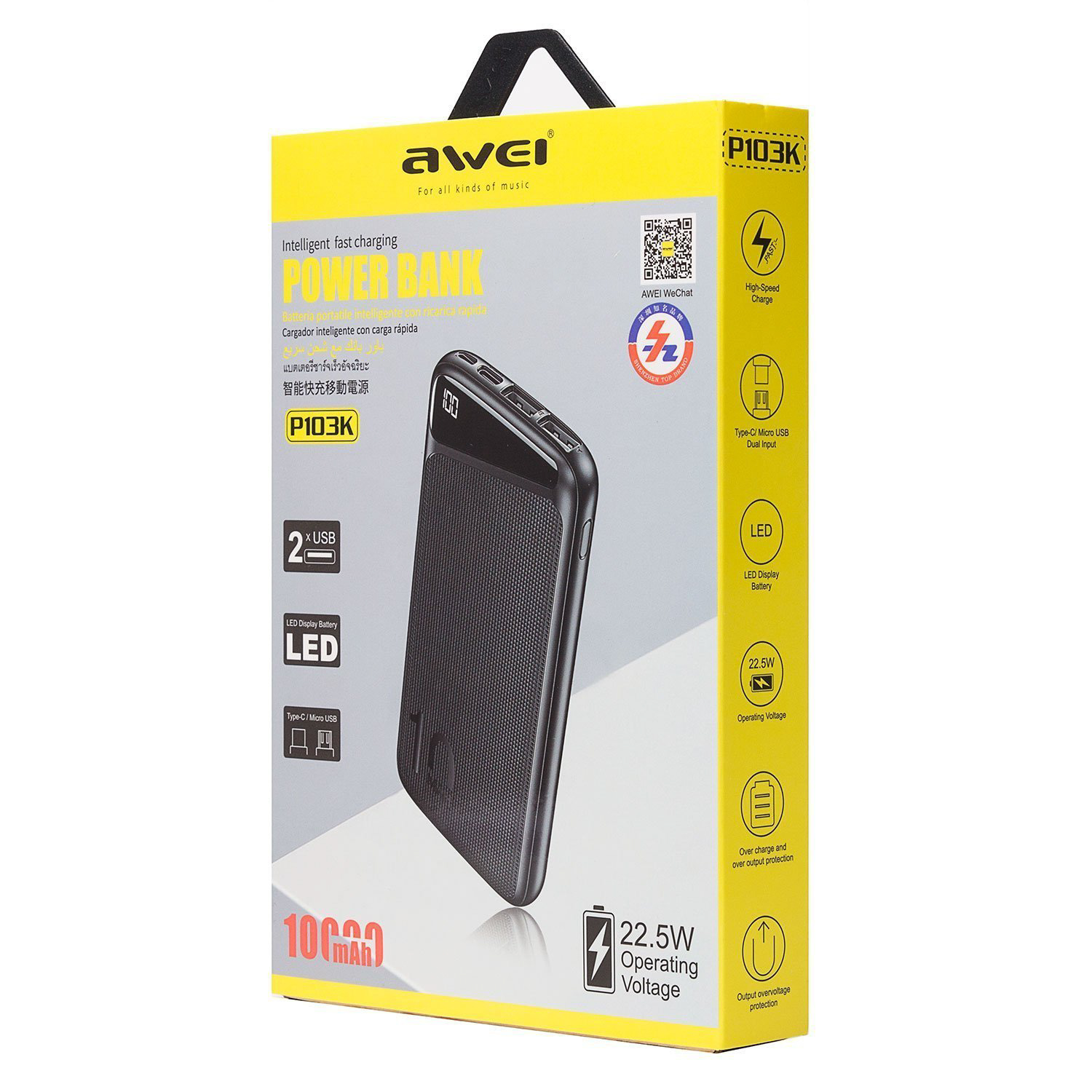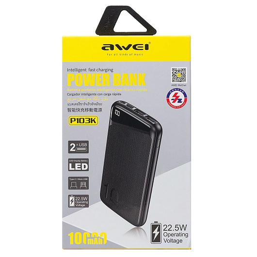 Внешний аккумулятор Awei P103K PD QC 10 000mAh Micro USB/USB Type-C (white)