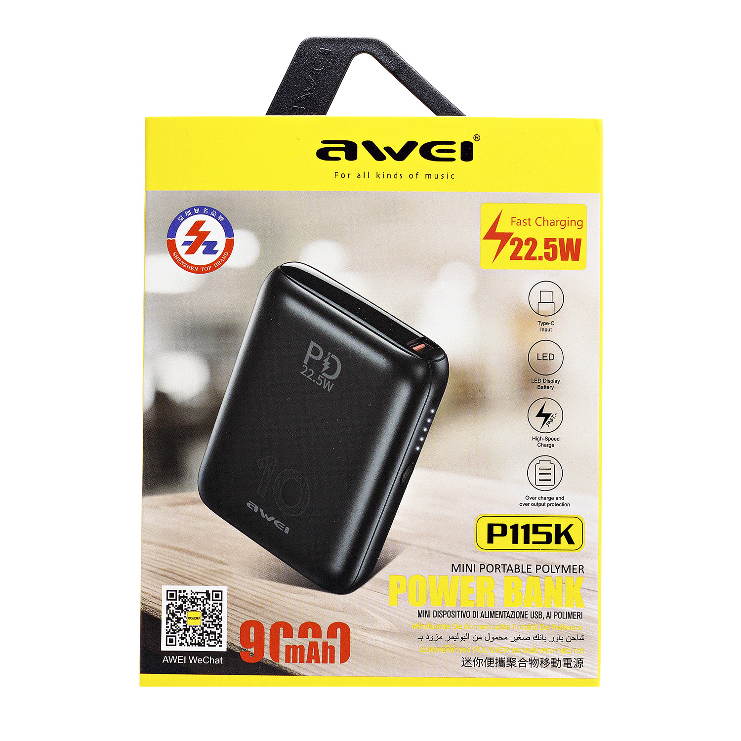 Внешний аккумулятор Awei P115K PD QC 9 000mAh USB Type-C/USB (black)