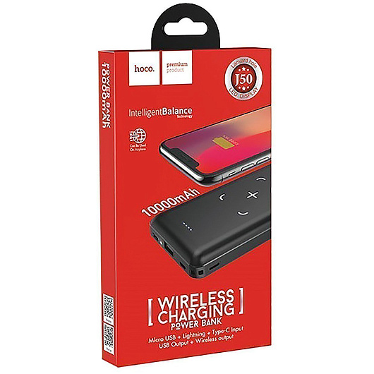 Внешний аккумулятор беспроводной Hoco J50 10000mAh Micro/Type-C/USB (black)