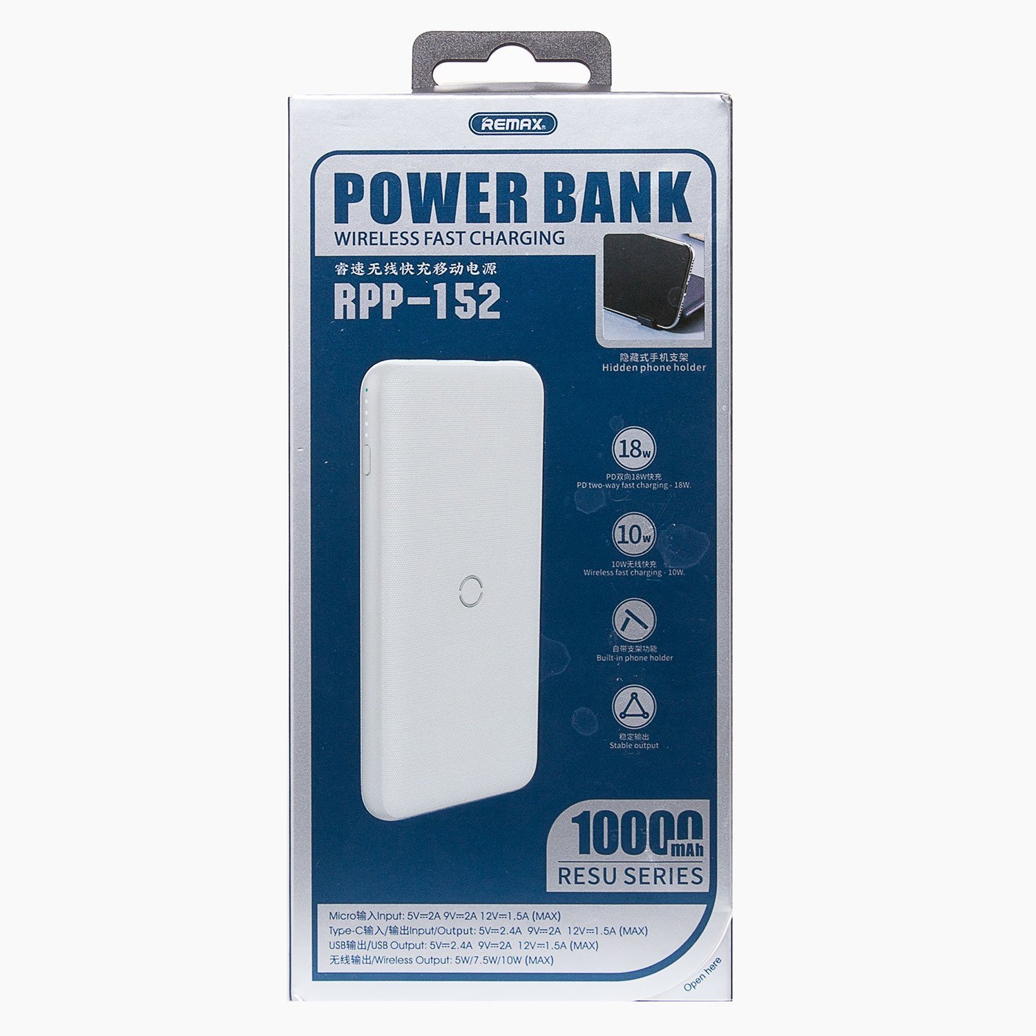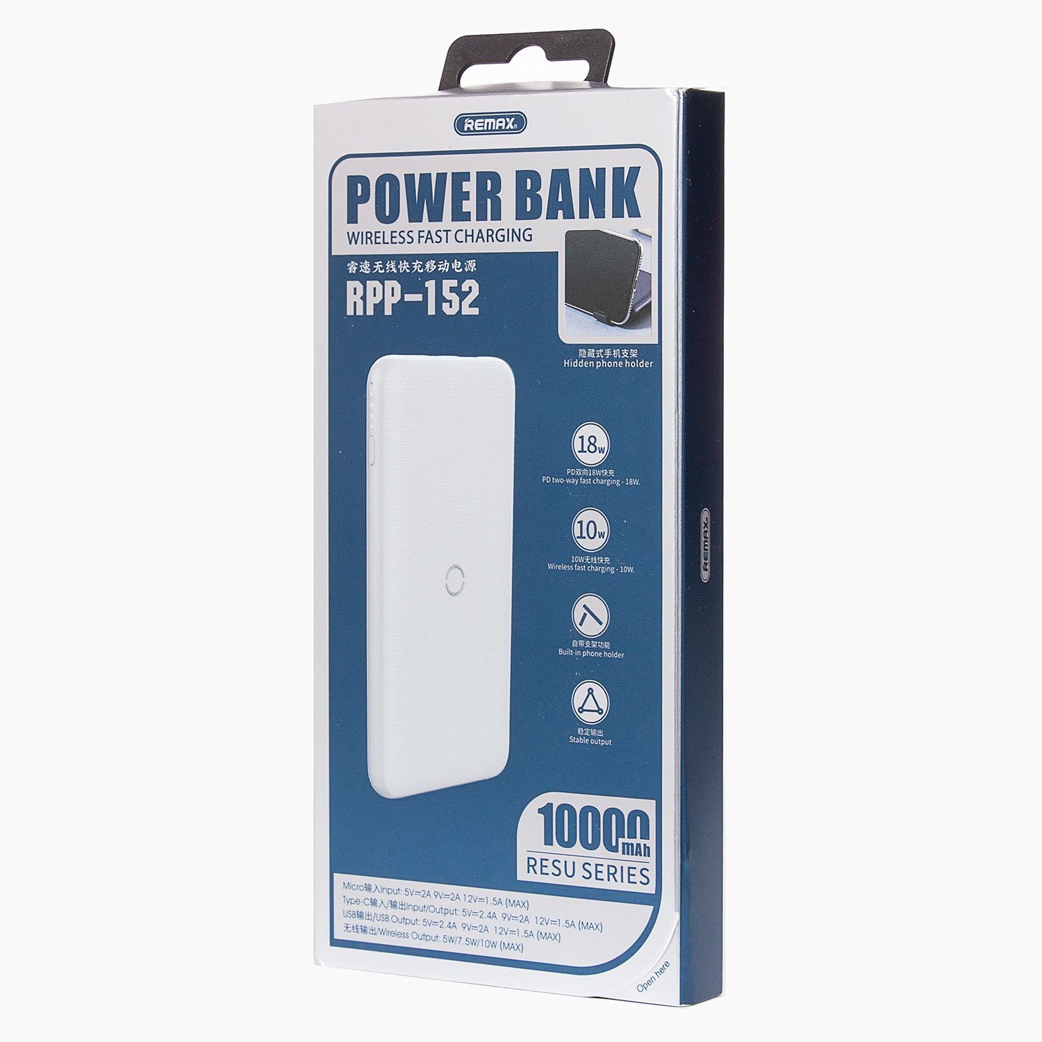 Внешний аккумулятор беспроводной Remax RPP-152 10 000mAh Micro USB/USB Type-C/USB/USB-C (white)