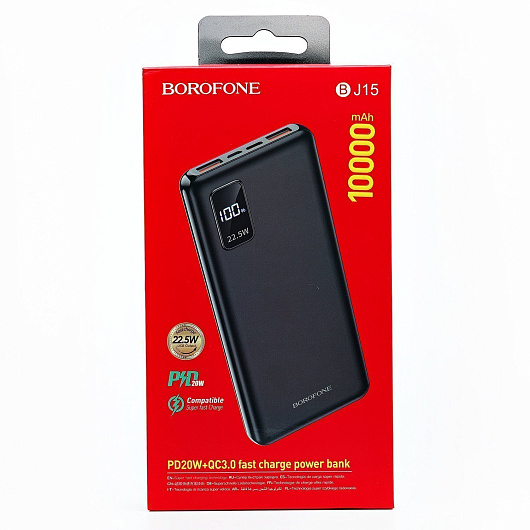 Внешний аккумулятор Borofone BJ15 PD QC 10 000mAh Micro USB/USB Type-C (black)