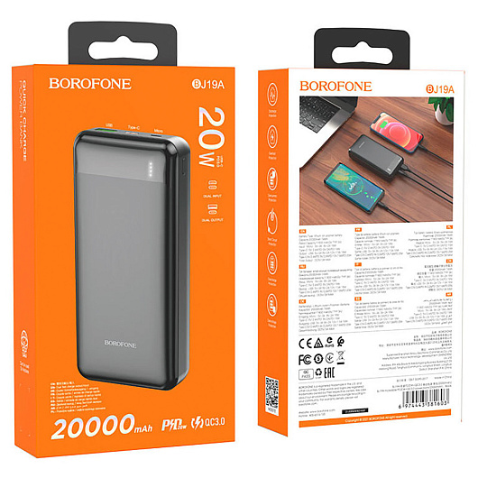 Внешний аккумулятор Borofone BJ19A PD QC 20000mAh Micro/Type-C/USB (black)
