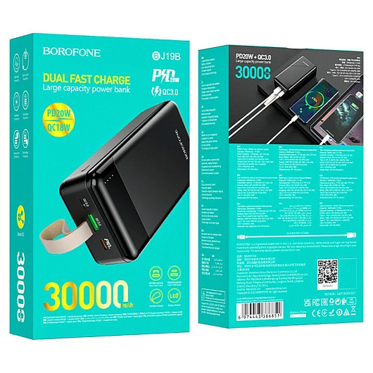 Внешний аккумулятор Borofone BJ19B PD QC 30000mAh Micro/Type-C/USB/Type-C (black)