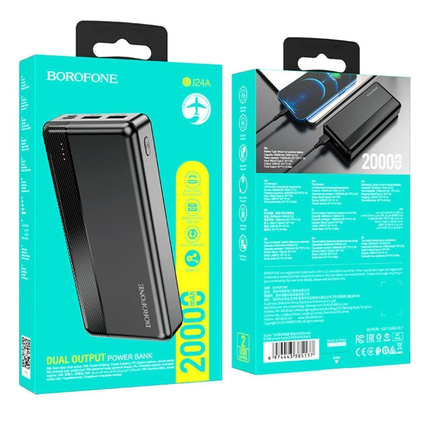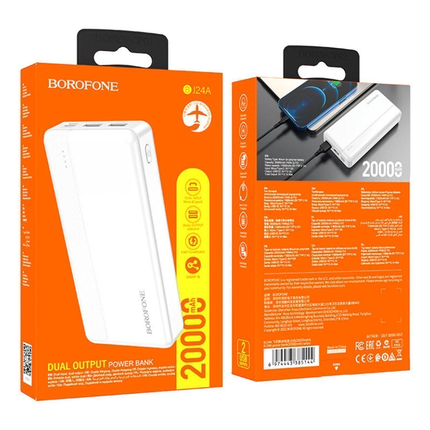 Внешний аккумулятор Borofone BJ24A 20000mAh Micro/Type-C/USB*2 (white)
