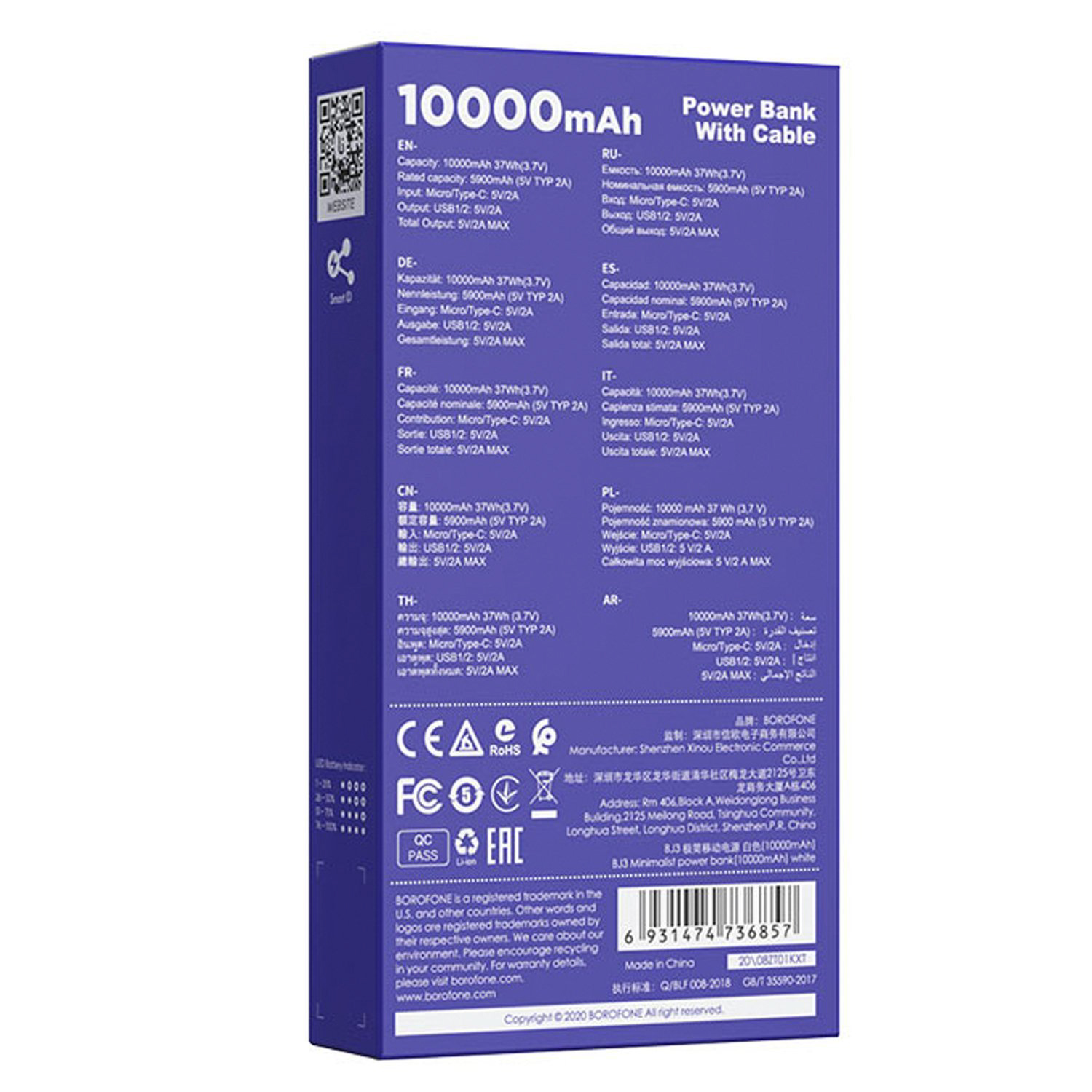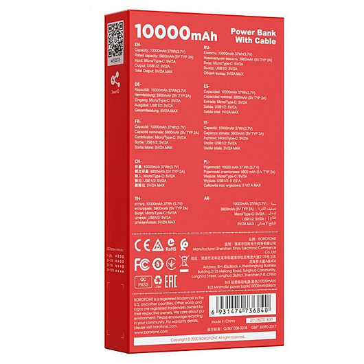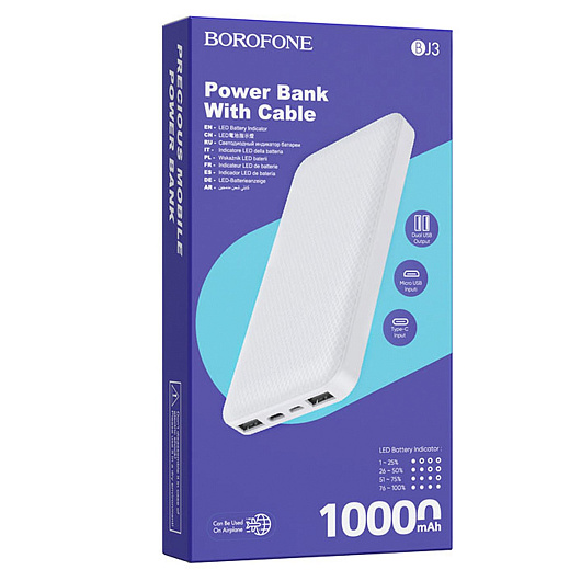 Внешний аккумулятор Borofone BJ3 10 000mAh USB Type-C/USB*2 (white)