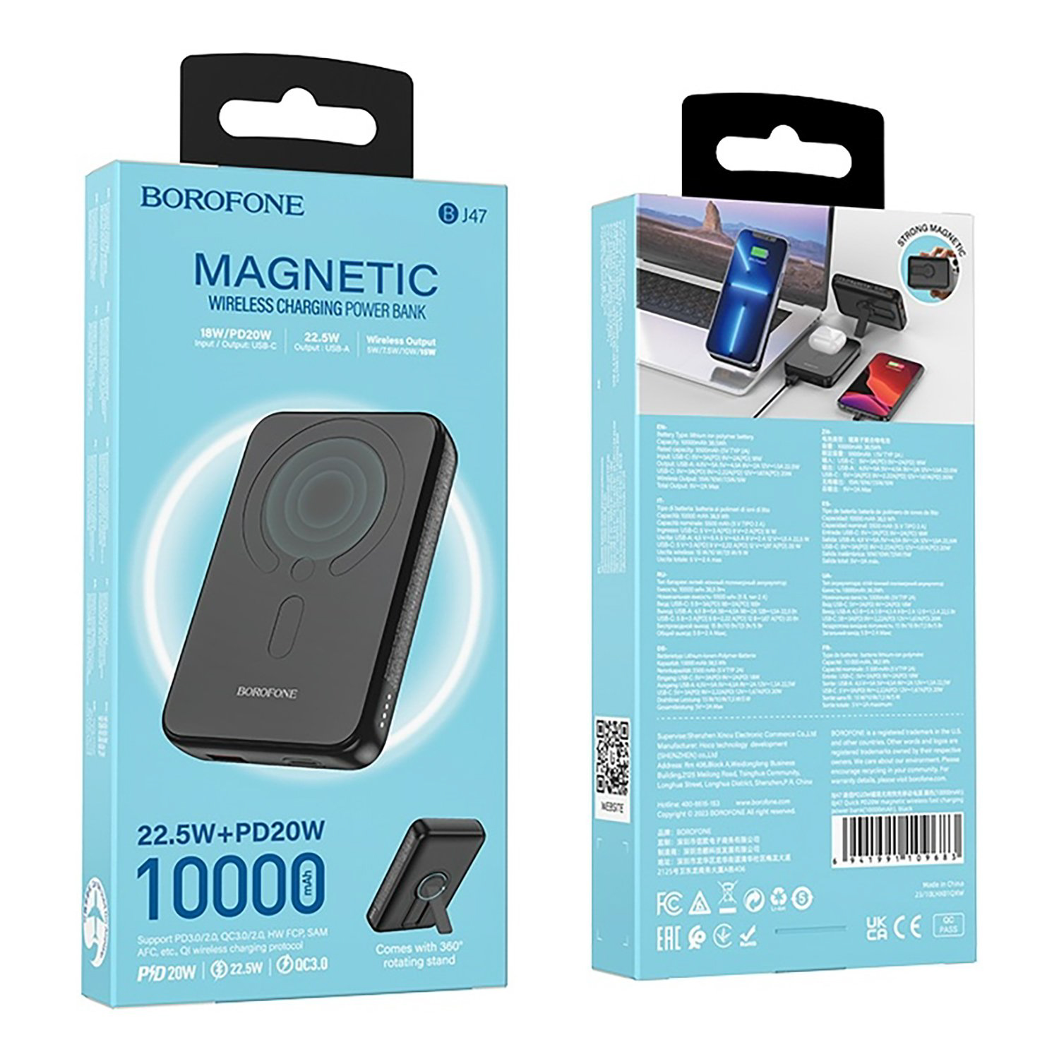 Внешний аккумулятор Borofone BJ47 PD20W SafeMag 10000mAh Type-C/USB/Type-C/SafeMag (black)