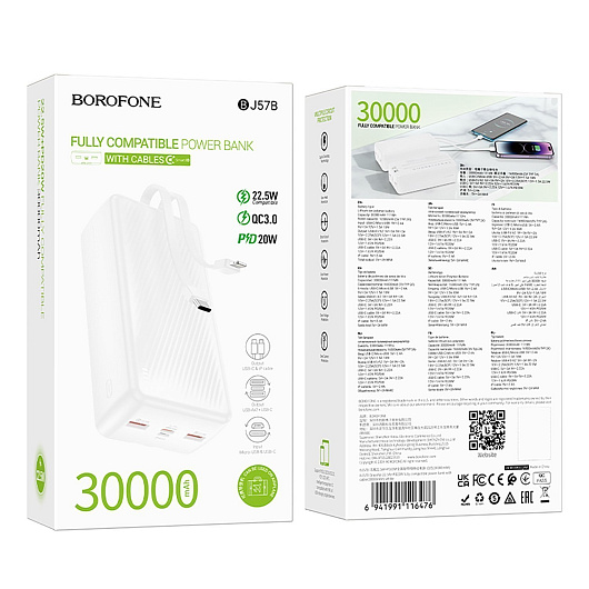 Внешний аккумулятор Borofone BJ57B 22.5W+PD20W 30000mAh Micro/Type-C/2USB/Type-C (white)