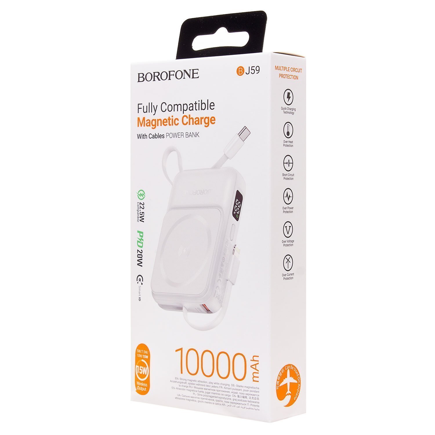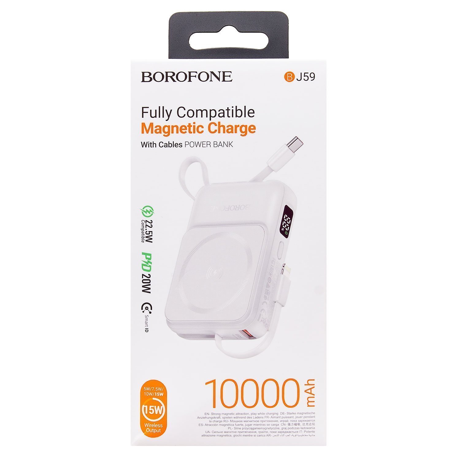 Внешний аккумулятор Borofone BJ59 Refined SafeMag 22.5W+PD20W 10000mAh Type-C/USB/Type-C/Lightning (white)