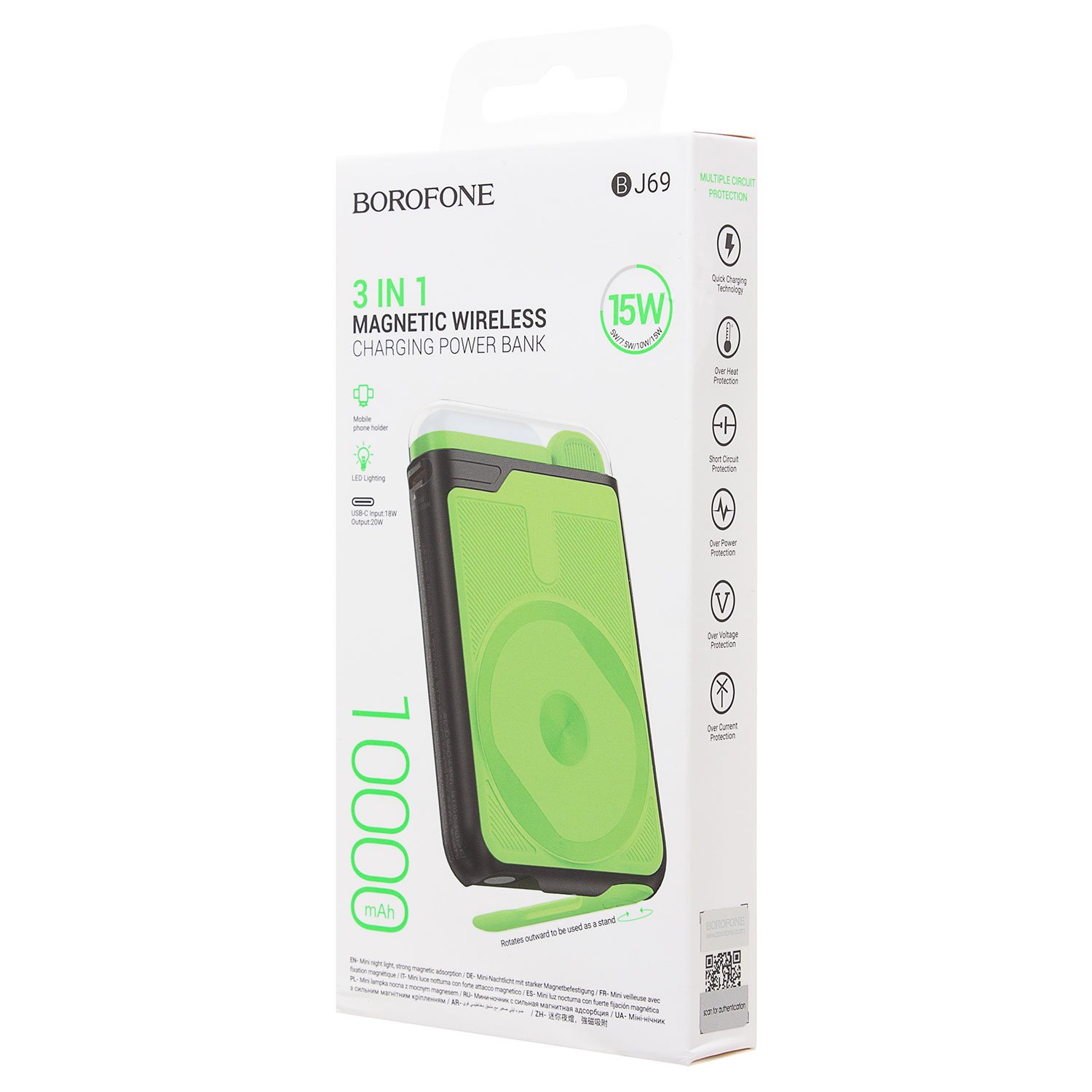 Внешний аккумулятор Borofone BJ69 PD20W SafeMag 10000mAh Type-C/USB/Type-C/SafeMag (black)