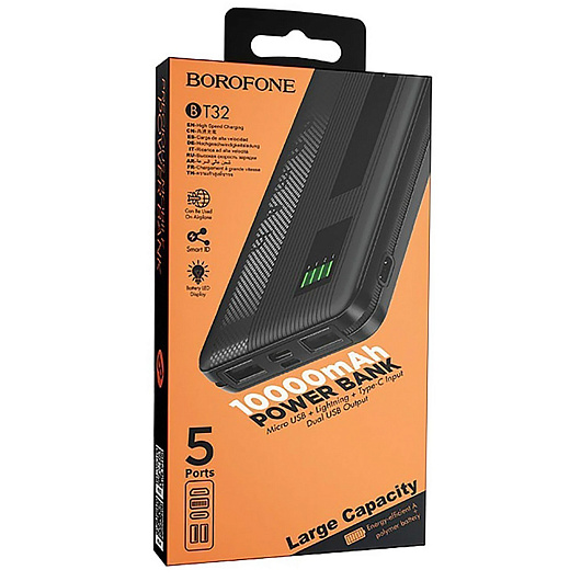 Внешний аккумулятор Borofone BT32 10000mAh Micro/Type-C/USB*2 (black)