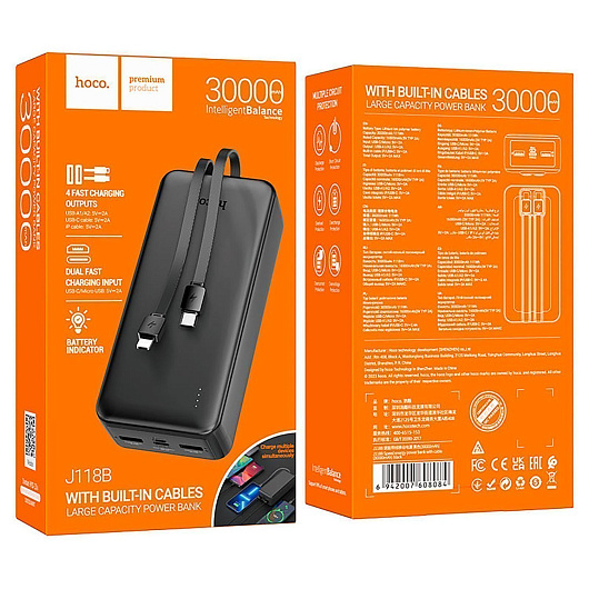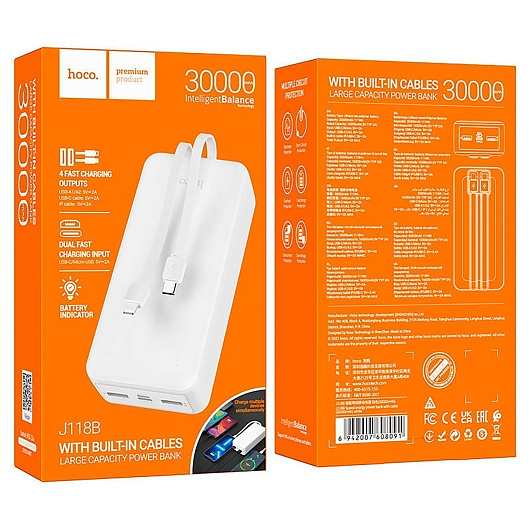 Внешний аккумулятор Hoco J118B 30000mAh Micro/Type-C/USB*2 (white)