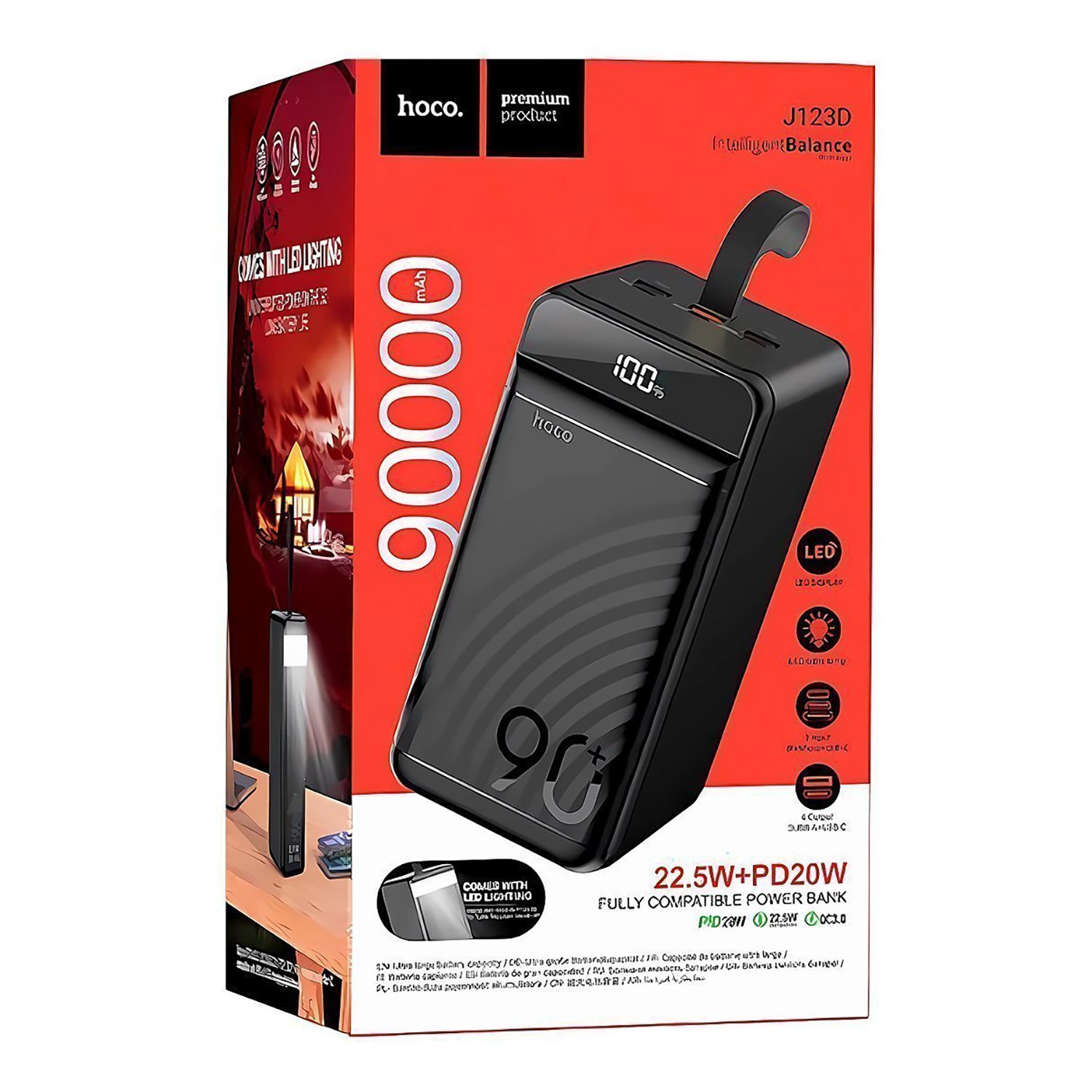 Внешний аккумулятор Hoco J123D 22.5W+PD20W 90000mAh Micro/Type-C/Lightning/USB*3/Type-C (black)