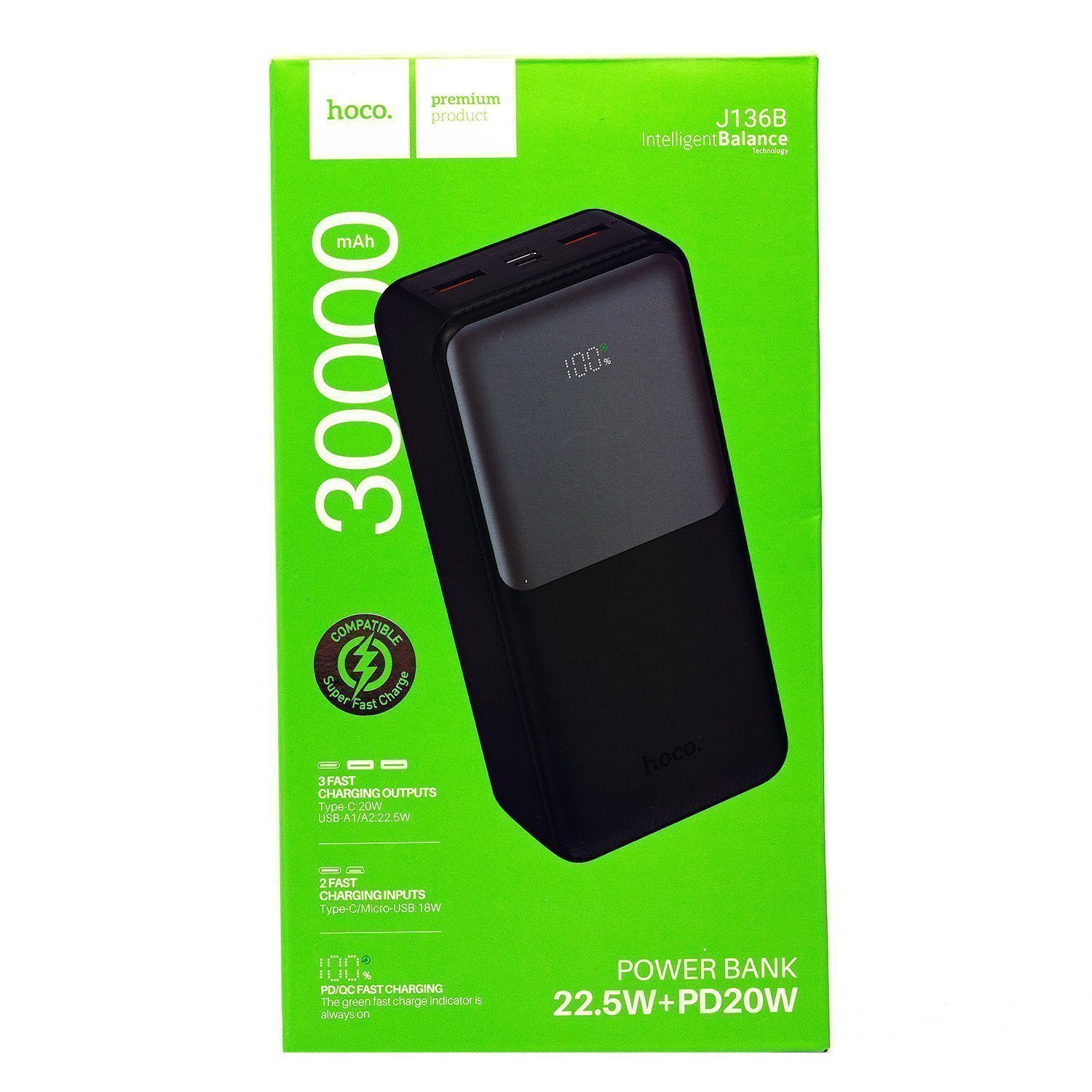 Внешний аккумулятор Hoco J136B 22.5W+PD20W 30000mAh Micro/Type-C/USB*2/Type-C (black)