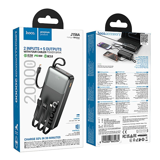 Внешний аккумулятор Hoco J156A Founder 22.5W+PD20W 20000mAh Type-C/USB/Type-C/Micro/Lightning (black)