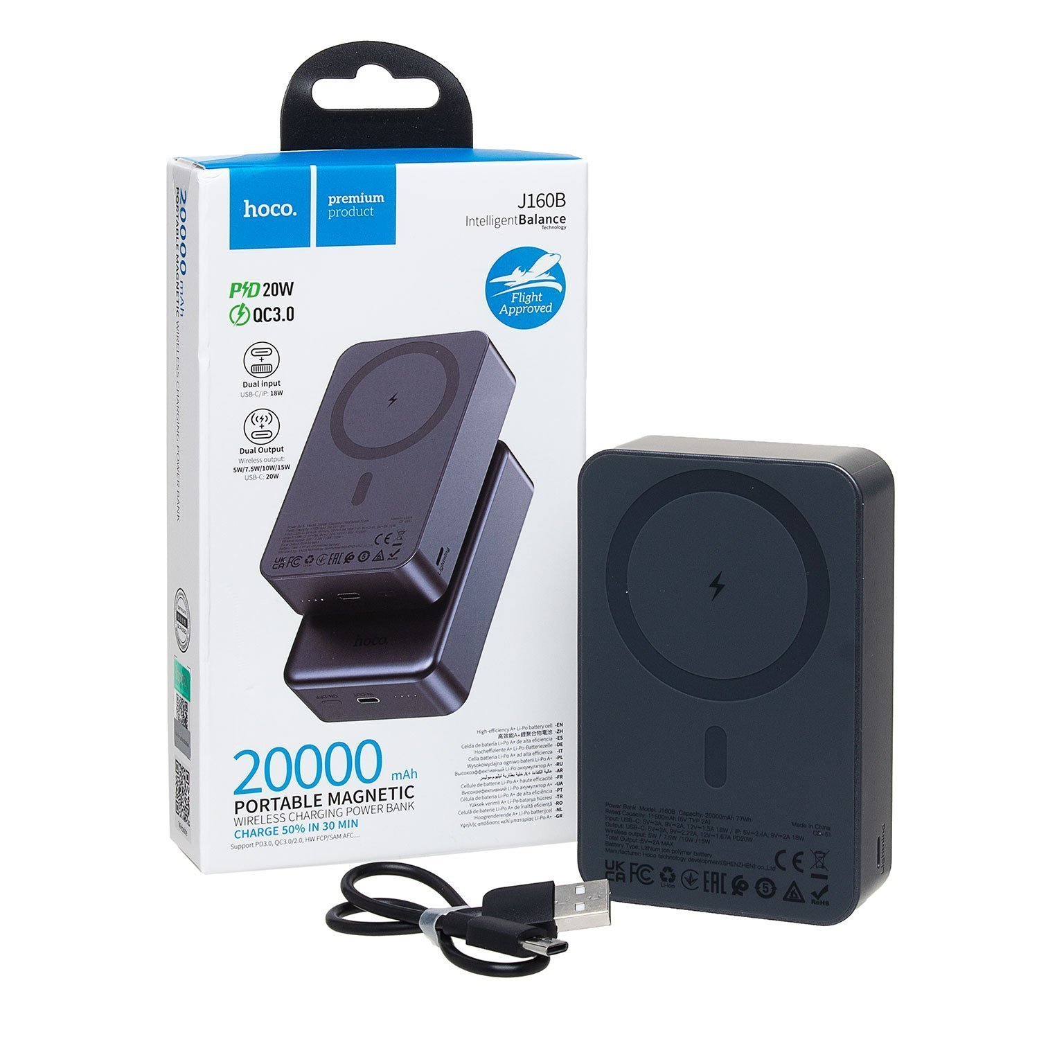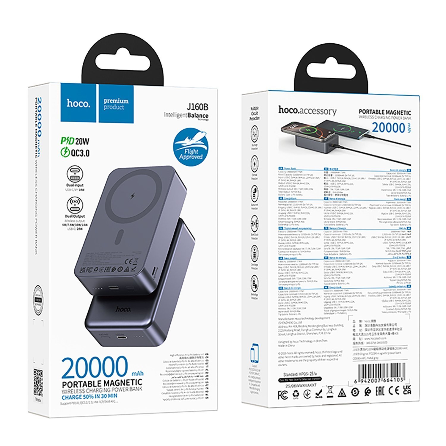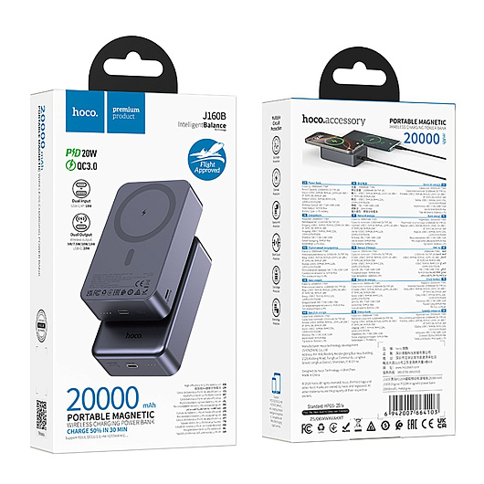 Внешний аккумулятор Hoco J160B Original PD20W 20000mAh Type-C/Type-C/SafeMag (metal gray)
