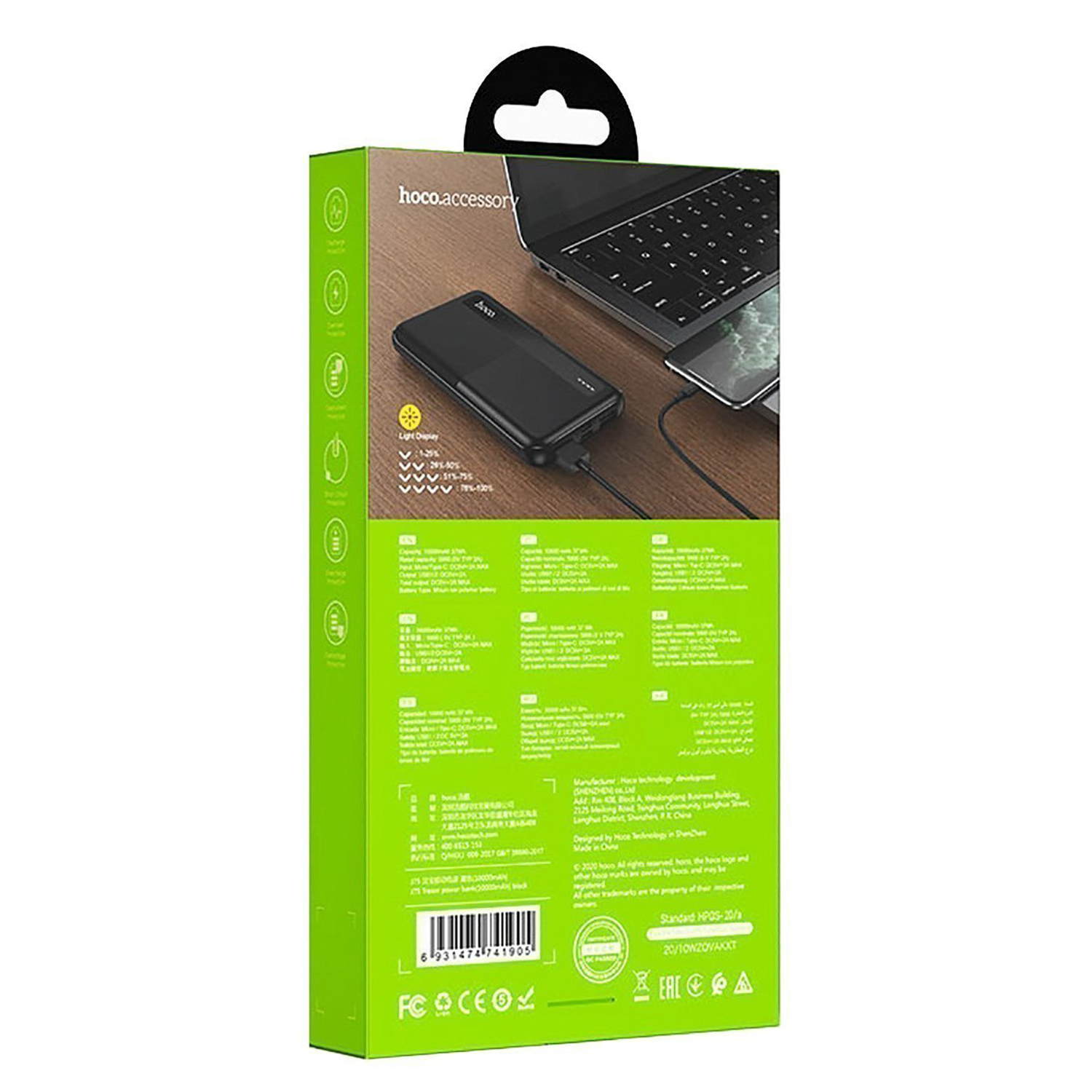 Внешний аккумулятор Hoco J75 10 000mAh Micro USB/USB Type-C (black)