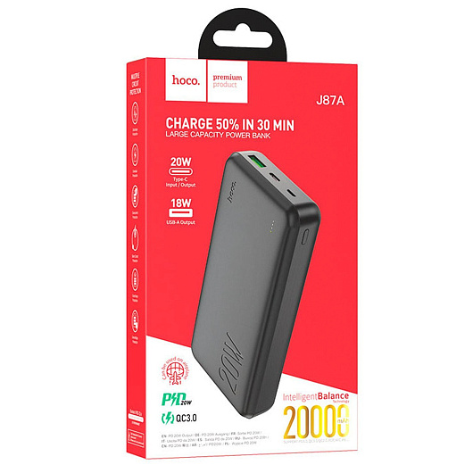 Внешний аккумулятор Hoco J87A (повр. уп.) 20000mAh Micro/USB/Type-C/USB/USB-C (black)